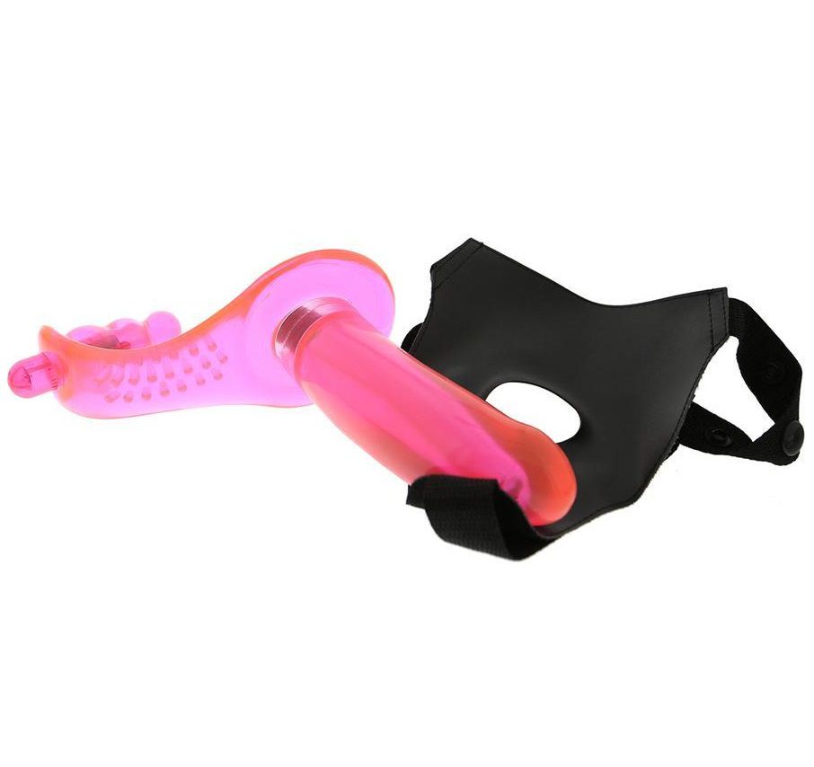 Фаллопротез женский (тройное удовольствие). Этот уникальный протез приносит удовольствие двум партнерам одновременно, потому что имеет помимо насадки фаллоиммитатора, крепящегося на эластичных стропах, рефленую удлиненную внутреннюю поверхность с анальным вибростимулятором для стимуляции клитора и промежностной зоны, а также ануса активного партнера. Этот страпон – идеальный инструмент для лесбийских ласк. А также для гетеросексуальных пар, которые решились поменяться ролями. Надев на себя трусики, женщина становится носительницей напряженного члена, вовнутрь которого встроен мощный моторчик. Небольшой анальный стимулятор при этом окажется в попке, а упругие шишечки на переходе между вибратором и ёлочкой – в районе клитора. Активный партнер наслаждается распространяющейся по секс-игрушке вибрацией, а также анальной и клиторальной стимуляцией. Пассивный получает удовольствие от стимуляции вагины/ануса. Длина анального стимулятора - 6 см., диаметр - 2,5 см. Трусики изготовлены из кожзама.