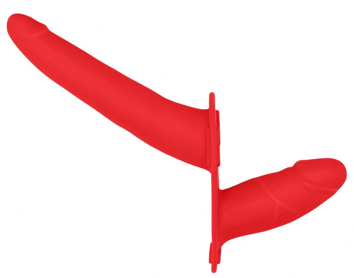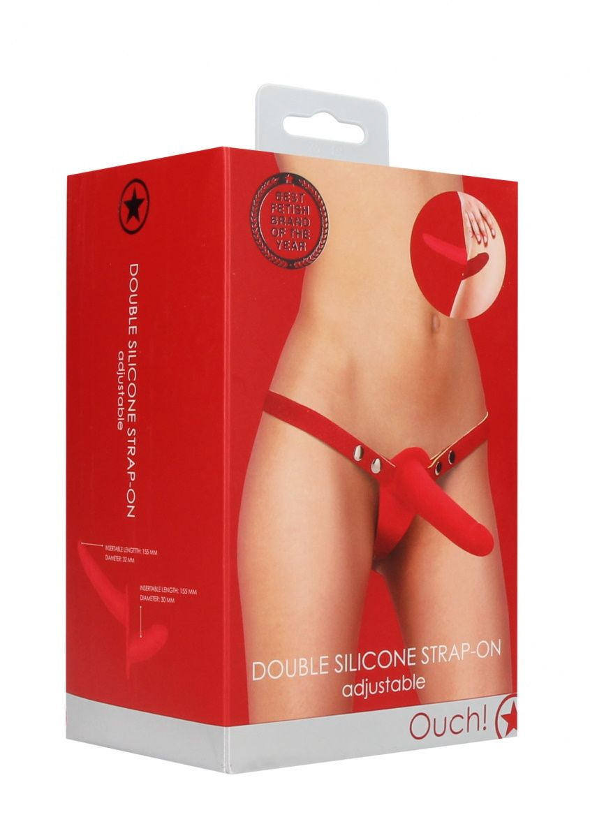 Double Silicone Strap-On Adjustable – женский страпон с креплением с помощью универсальных полиуретановых ремешков. Он состоит из двух почти одинаковых частей, различающихся только размером и степенью наклона к основанию. Основа страпона изготовлена из качественного силикона, который не содержит фталатов и совершенно безопасен для здоровья. Рабочая длина - 15 см. Длина вагинального отростка - 8,5 см., диаметр - 3 см.
