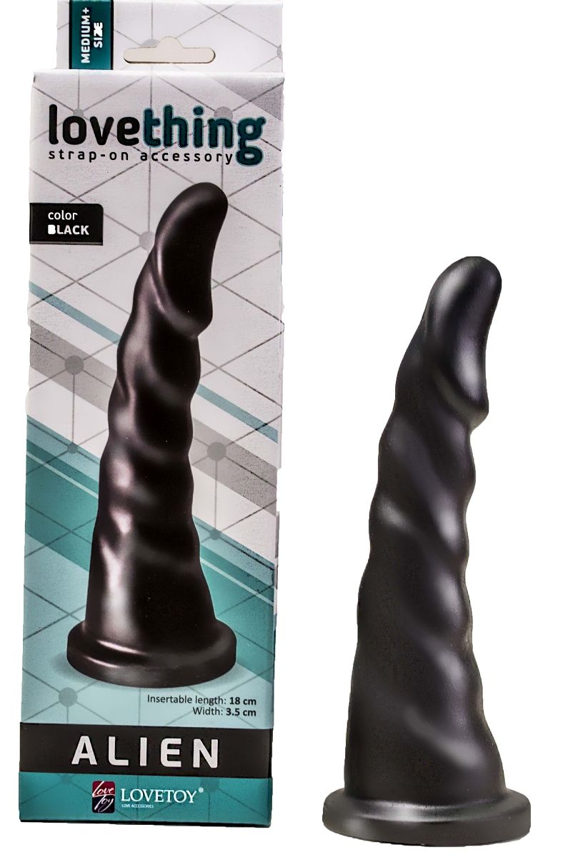 Оригинальная черная насадка для страпона с кольцевидным креплением. Плаг черного цвета изготовлен из гладкого и приятного на ощупь материала. Игрушка идеально подходит для анального секса. Насадка в виде фаллоса с ярко выраженной головкой и рельефной спиралевидной поверхностью делает каждое проникновение незабываемым. Имеет ограничительное основание для безопасного использования в соло-игре. Рабочая длина - 17 см.