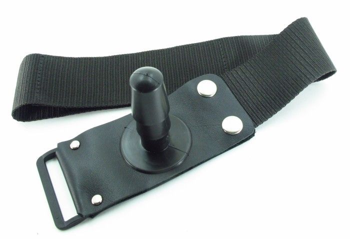Небольшой по размерам интим-девайс закрепляется на ноге, размер легко регулируется с помощью ремешков. Штырек закреплен на кожаной подложке. Ширина ленты - 5 см.