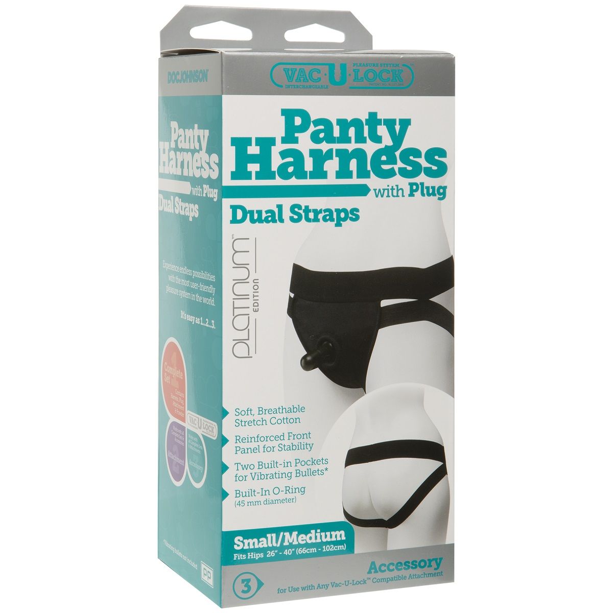 Трусики с плугом Vac-U-Lock Panty Harness with Plug Dual Strap - S/M. Рассчитаны на объем бёдер до 102 см.