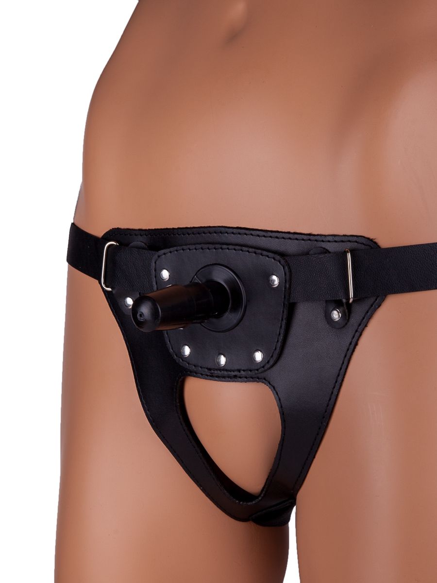 Симпатичные трусики для страпона в комплекте со штырьком для насадок - универсальный сексуальный аксессуар, который подойдет обоим партнерам. Размер трусиков регулируется мягкими и приятными для тела ремешками на бедрах. Передняя стеночка трусиков выполнена из кожи, а ремешки - из плотных лент. Этот предмет одежды принесет в вашу интимную жизнь массу новых ощущений. Насадки приобретаются отдельно. Трусики поставляются в пластиковой коробочке.