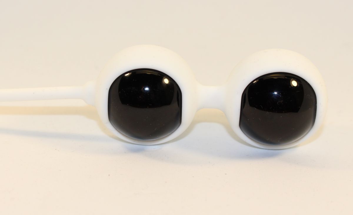 Вагинальные шарики со смещенным центром тяжести для тренировки интимных мышц - шарики из стекла, оболочка из силикона. Вагинальные шарики используют для сексуального удовольствия. Петля позволяет легко извлекать шарики. Диаметр шариков без оболочки - 2,8 см. Рабочая длина - 7,5 см.