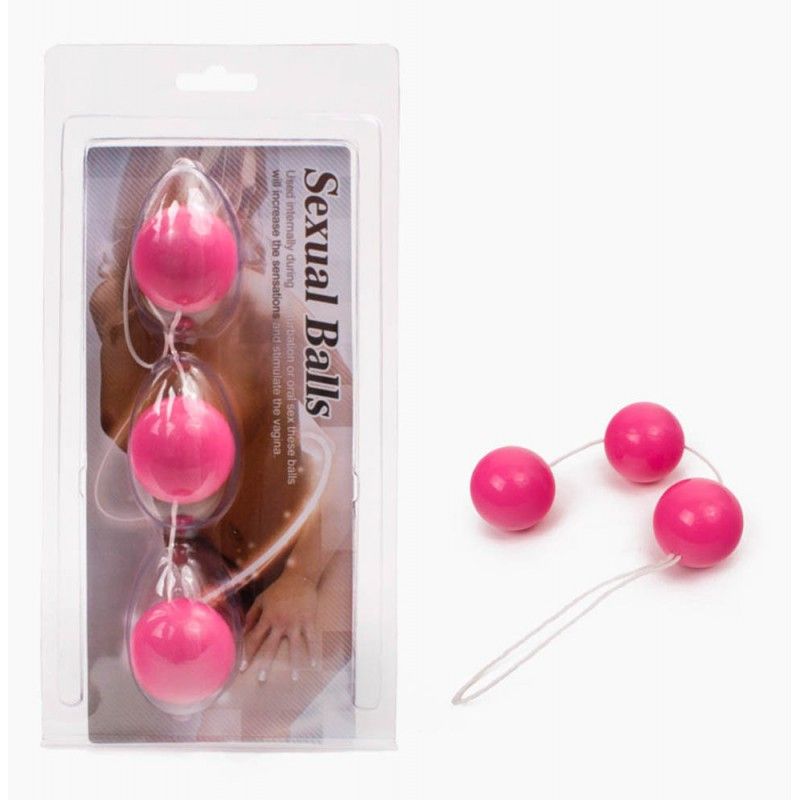Розовые вагинальные шарики со смещённым центром тяжести на верёвочке Baile BI-014049-3-0101S