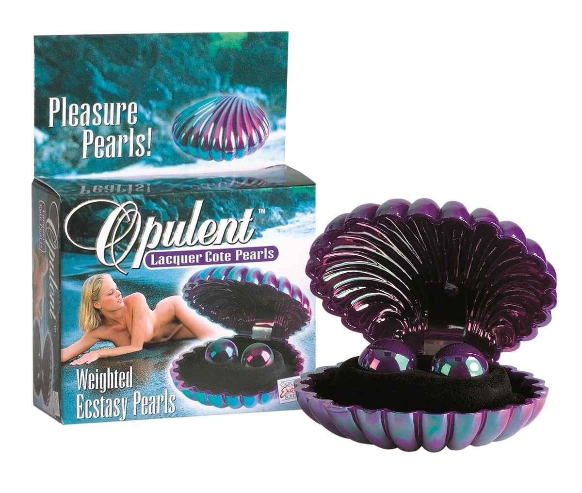 Вагинальные шарики в виде перламутровых жемчужин. Упаковка - изысканная раковина с переливами в темно-синих тонах. Вес одного шарика - 24 гр.