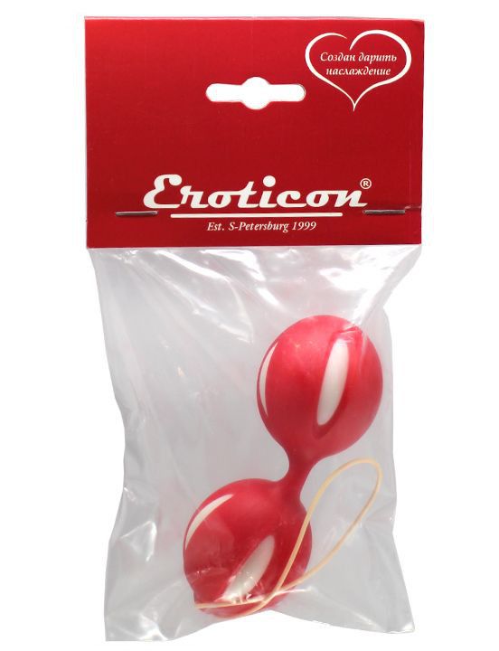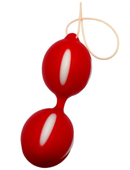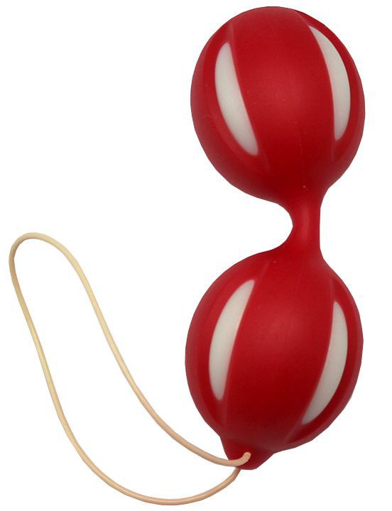 Два вагинальных шарика для тренировки мышц влагалища на гибкой сцепке. Для комфортного извлечения шарики оснащены петелькой. Вес - 80 гр.