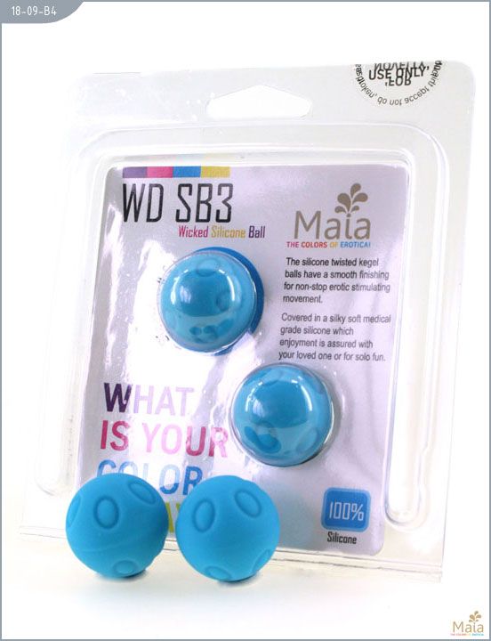 Тренажер Кегеля Wicked, металлические с силиконовым покрытием, голубые. Два шарика с рельефной поверхностью для тренировки мышц влагалища. Использование вагинальных шариков положительно влияет на общий тонус женских половых органов и усиливает удовольствие от секса. Можно использовать один или сразу оба шарика.