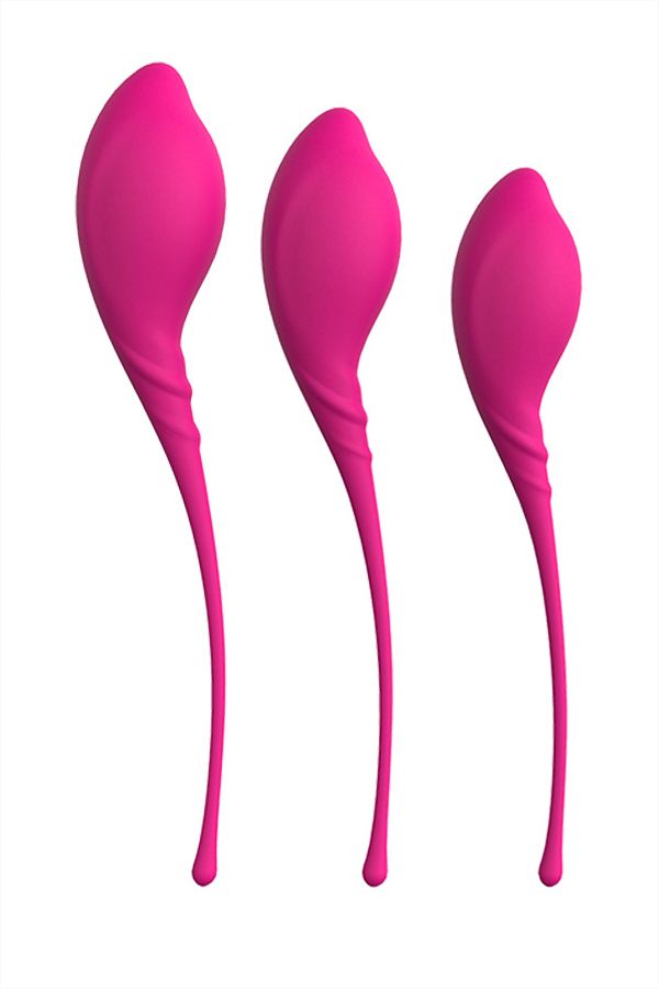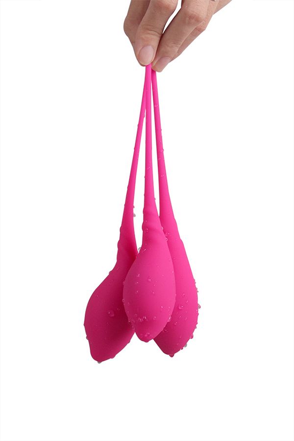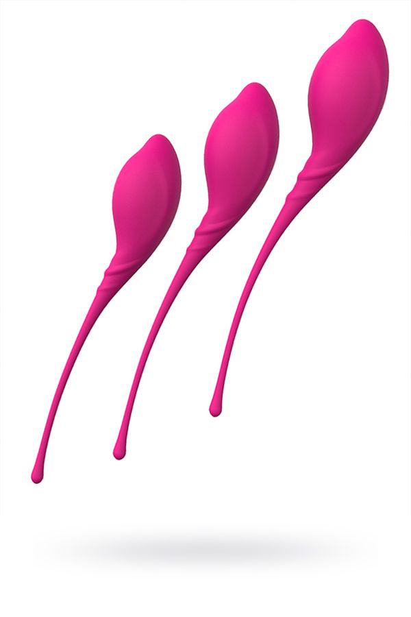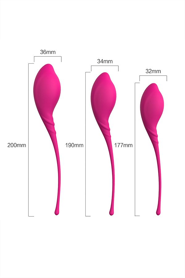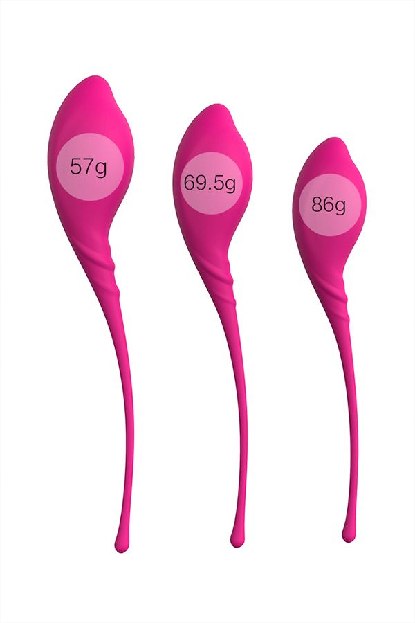 Три вагинальных шарика изящной формы весом 57, 69,5 и 86 г для тренировки мыщц влагалища.На первом этапе используйте тренажер весом 57 г со смещенным центром тяжести. Он будет вибрировать при каждом движении. В первый раз тренируйтесь 15 дней по 15 минут в день, затем постепенно увеличивайте время по три минуты в день до 30 минут.На втором этапе тренируйтесь 30 дней по 30 минут.После первых двух этапов выможете сами управлять движениями вагианьного шарика внутри, поэтому используйте самый тяжелый шарик весом 86 г 30 минут 30 дней. ТренировкиПриятная стимуляцияМедицинский силикон.Товар абсолютно водонепроницаемый. В первом самом легком шарике Длина большого шарика - 20 см., диаметр - 3,6 см., вес - 57 гр. Длина среднего шарика - 19 см., диаметр - 3,4 см., вес - 69,5 гр. Длина малого шарика - 17,7 см., диаметр - 3,2 см., вес - 86 гр.