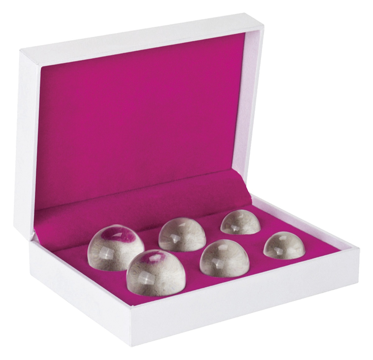 Набор вагинальных шариков, изготовленных из стекла. Шарики без сцепки, по три пары разных размеров в красивой подарочной коробочке. Диаметр пар шариков - 1,9, 2,2 и 2,5 см.