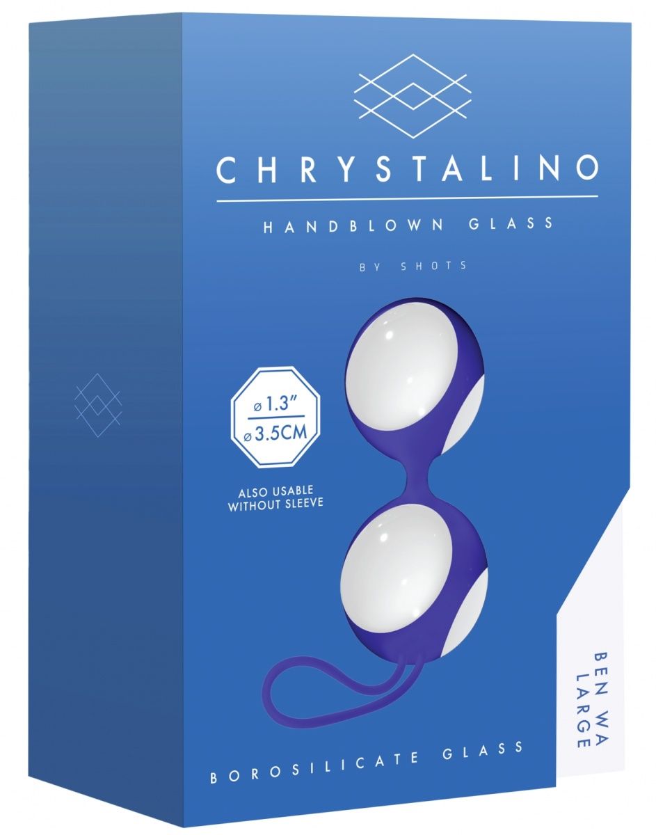 Бело-синие стеклянные вагинальные шарики в синей оболочке Shots Media BV CHR024WHTBen Wa Large
