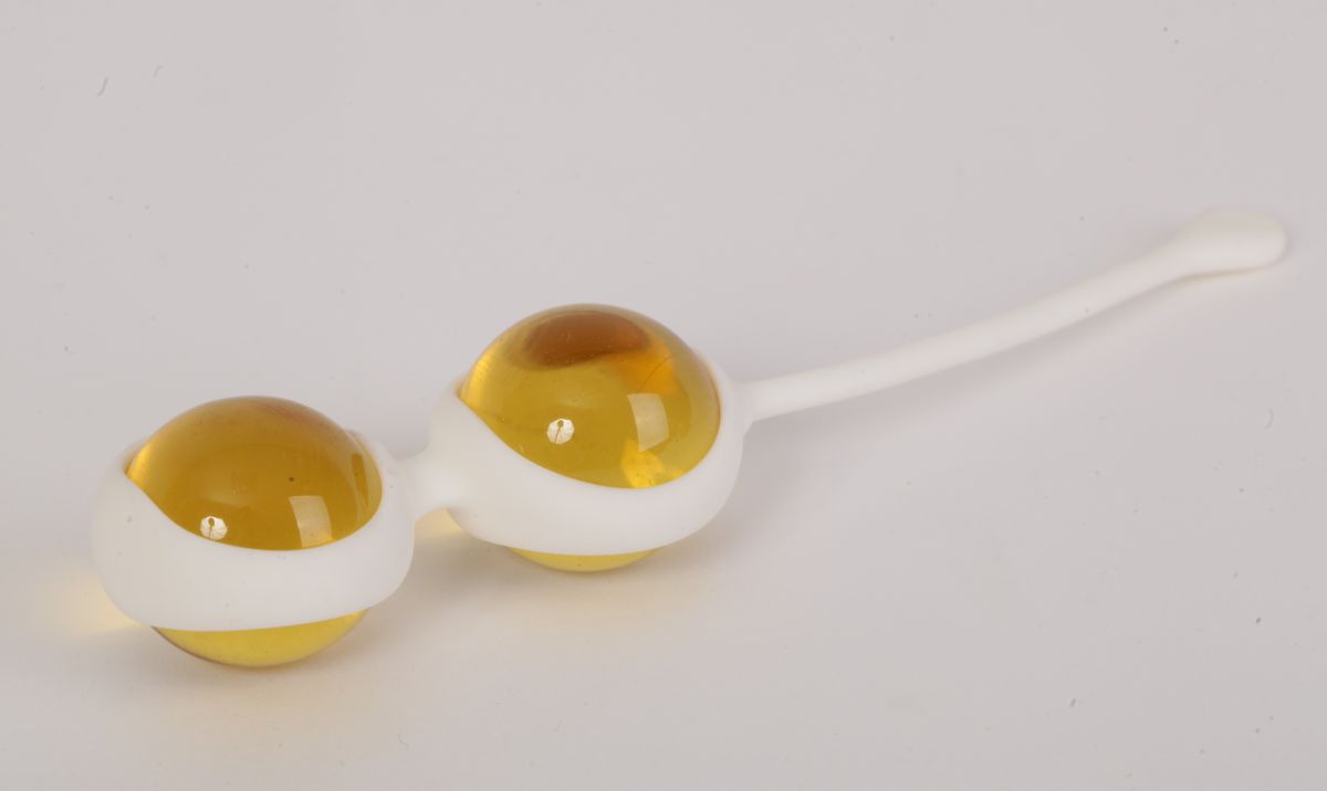 Янтарные вагинальные шарики со смещенным центром тяжести для тренировки интимных мышц. Вагинальные шарики используют для сексуального удовольствия. Петля позволяет легко извлекать шарики. Рабочая длина - 8 см.