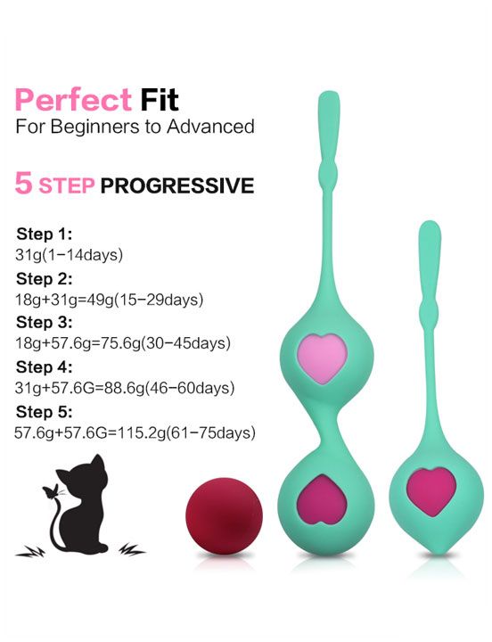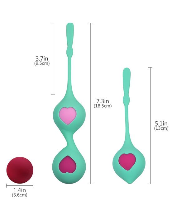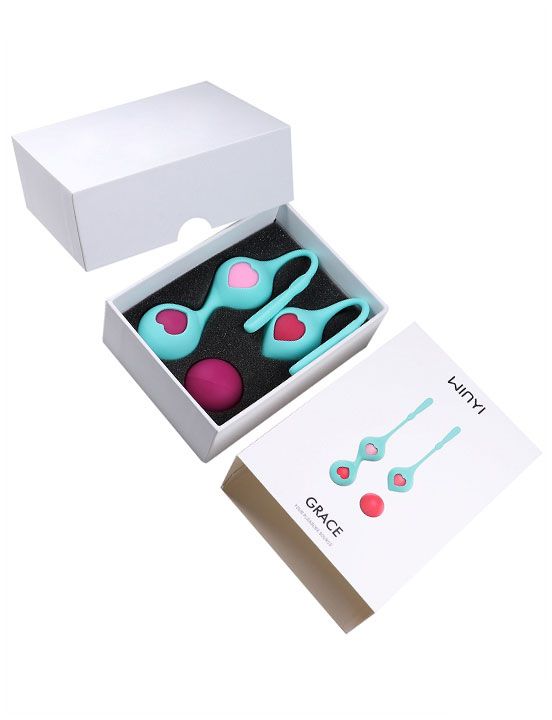 Шарики вагинальные Grace разновесные в наборе. Набор вагинальных шариков со смещенным центром тяжести для тренировки мышц тазового дна. Предназначены для неинвазивного лечения слабого мышечного контроля, приводящего к частому мочеиспусканию, недержанию мочи и низкой сексуальной удовлетворенности. Разный вес шариков предполагает выполнение курса тренировок от простых к более сложным упражнениям. Цвет шарика соответствует его весу. Силиконовые чехольчики с милыми сердечками (одинарный и двойной) - предназначены для удобства введения и извлечения шариков из влагалища. Вес шариков - 18, 31, 57,6 и 57,6 гр. Длина двойного чехла - 18,5 см. Длина одинарного чехла - 13 см.