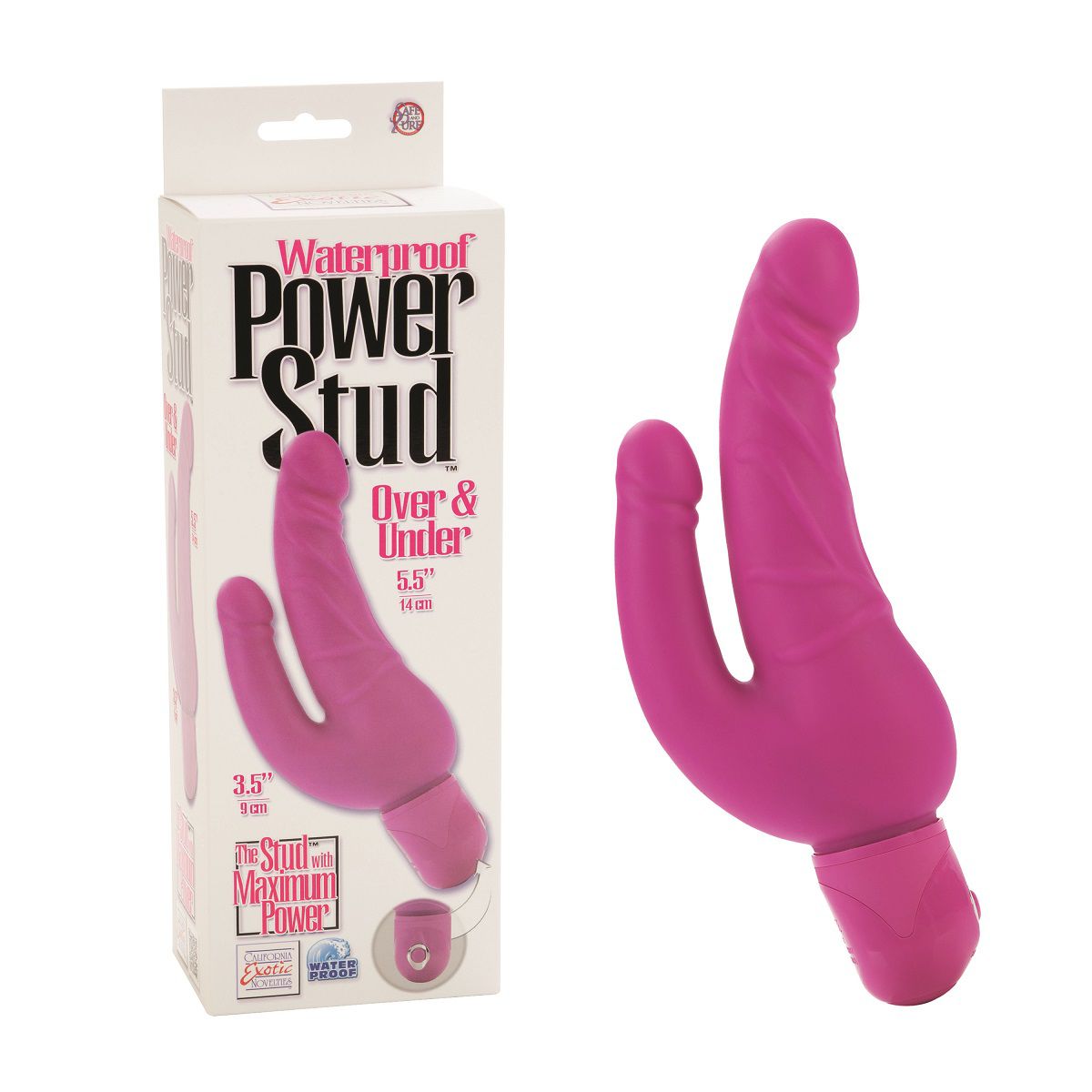 Вибромассажер Power Stud Over Under Dongs - анально-вагинальный стимулятор со встроенным вибратором. Двойной вибромассажер позволяет стимулировать одновременно две зоны - анальную и вагнальную, создавая эффект двух партнеров . Вибратор полностью водонепрницаемый, имеет 3 скорости, которые регулируются с помощью кнопки. Рабочая длина - 14 см. Длина анального отростка - 9 см., диаметр - 2,5 см.