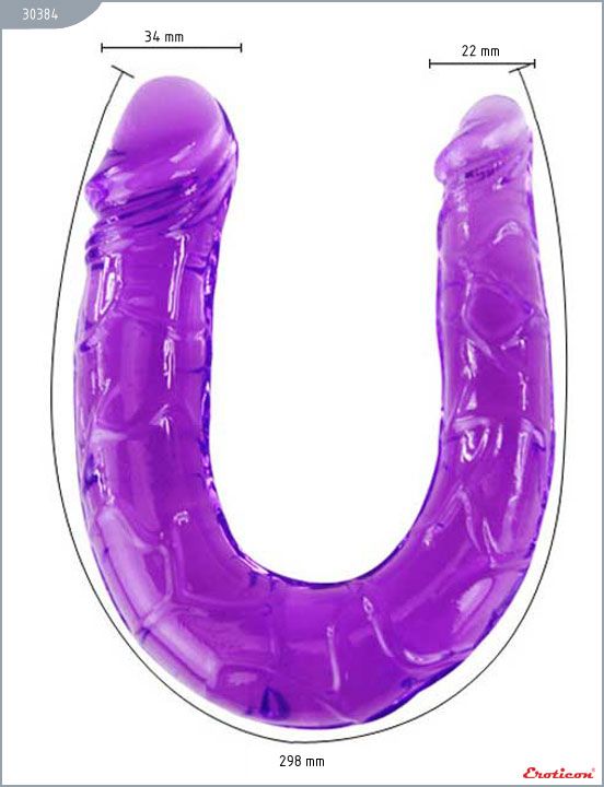 Фаллоимитатор двойной, анально-вагинальный, фиолетовый, EROTICON Double Dong. Упругий двусторонний фаллоимитатор создан для страстных и дерзких игр. Реалистичная форма фаллоса позволит вам получить максимальное удовольствие. Фаллоимитатор хорошо гнётся. Его можно использовать в любой позе. Диаметр - 3,4 и 2,2 см.