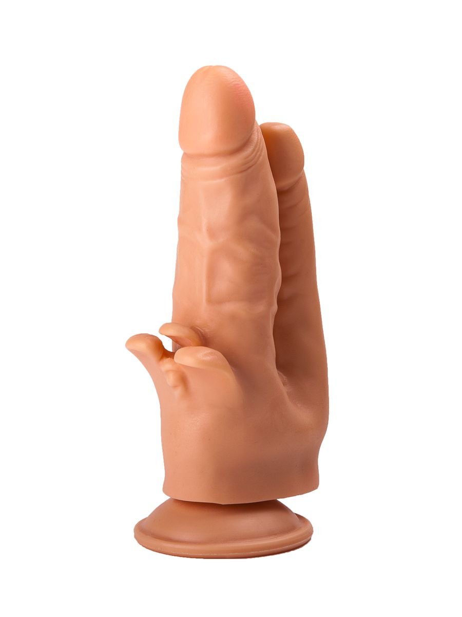 Получить наслаждение 2-в-1 проще, чем может показаться. Эта бежевая секс-игрушка из бархатистого на ощупь материала представляет собой два сросшихся в основании фаллоса. Тоненький ствол с чуть вытянутой головкой идеально подходит для анальной стимуляции. Крупный, с пышными венами и мягкими лепестками для клиторального массажа, подарит самые чувственные проникновения в лоно. Одновременная стимуляция внутри и снаружи – гарант действительно сильных ощущений и мощного оргазма. Подошва-присоска облегчит пользование реалистичным стимулятором. Диаметр анального отростка – 2,1 см.