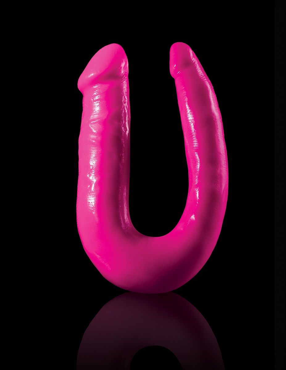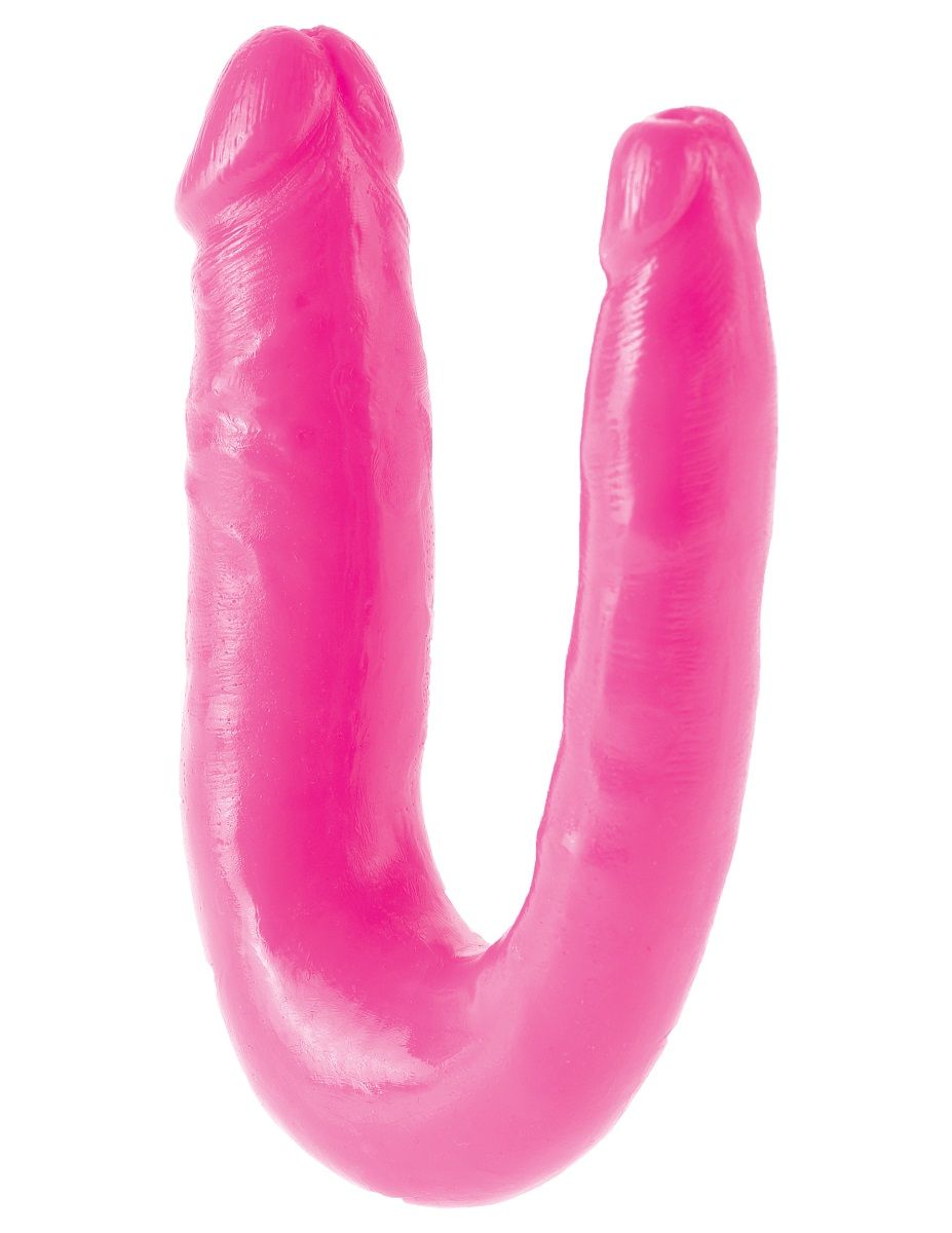 Ярко-розовый U-образный фаллоимитатор Double Trouble. Очень приятный на ощупь, отлично гнётся, упругий. Один отросток чуть меньше другого, что делает Double Trouble идеальным инструментом для одновременной анальной и вагинальной стимуляции. Игрушка, для соло игры и для близости вдвоем, имеет две чётко очерченные головки, красивый рисунок вен на стволе. Материал не содержит фталатов. Длина вагинального отростка - 14 см., диаметр - 3,2 см. Длина анального отростка - 11,4 см., диаметр - 2,5 см.