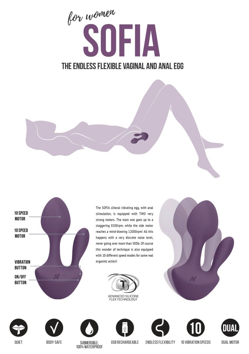 Фиолетовый анально-вагинальный вибратор Shots Media BV Sofia JIL011PUR (13 см)