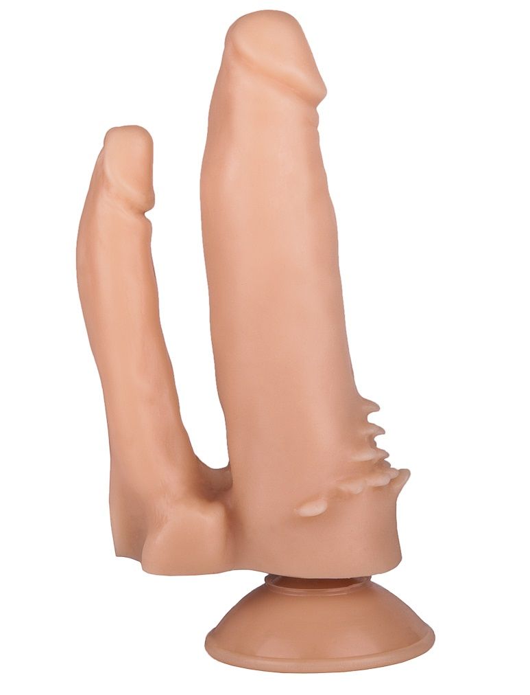 Чтобы прочувствовать всю прелесть двойного проникновения, необязательно просить сексуального партнера использовать страпон или вибратор. Этот двойной фаллоимитатор из ЭКОй справится с поставленной задачей на все 100 %. Можно держать его рукой и направлять внутрь себя под нужным углом. Либо закрепить на твердой поверхности с помощью присоски и усесться сверху. Скольжение обоих отростков, больший из которых покрыт шипами на основании для стимуляции клитора, доставит истинное наслаждение. Длина анального фаллоса - 12,5 см., диаметр - 2,5 см.
