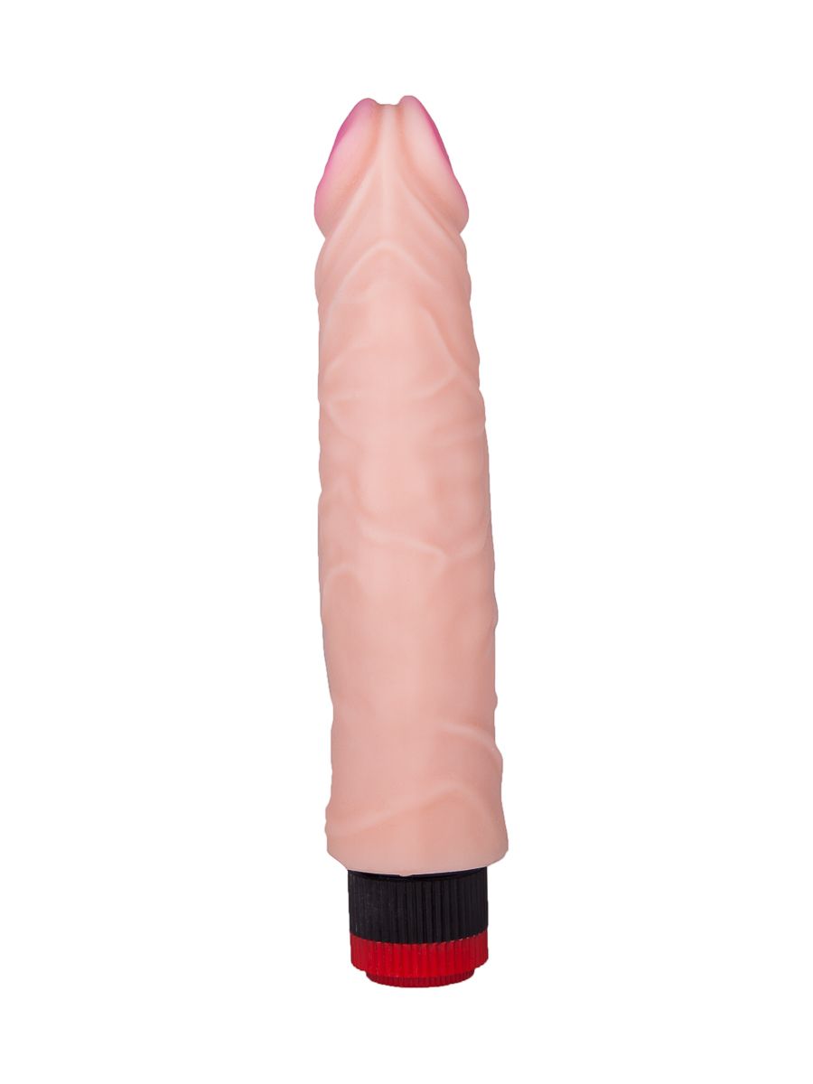 Вибромассажер выполнен из материала неоскин, качество которого гарантированно соответствует международным стандартам. Изделие имитирует мужской пенис с ярко выраженной головкой и рельефной поверхностью по всей длине ствола. Интим-аксессуар в таком исполнении – это отличное сочетание выгодной цены и высокого качества. Вибрацию можно легко регулировать с помощью плавных движений колесика, расположенного в основании игрушки. Рабочая длина - 20,5 см.