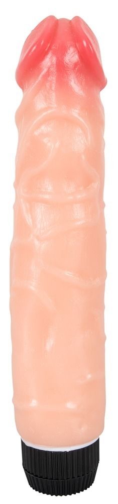 Толстый вибратор с венами и ярковыраженной головкой телесного цвета