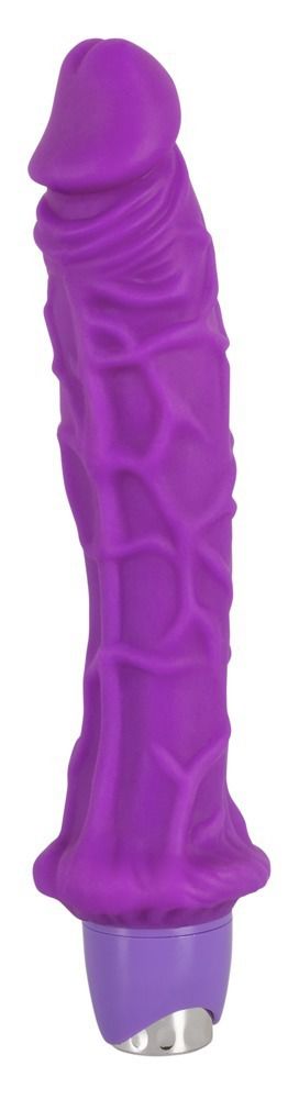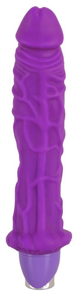 Фиолетовый большой вибратор с рельефом Joy. Ярко выраженный рельеф из вен.