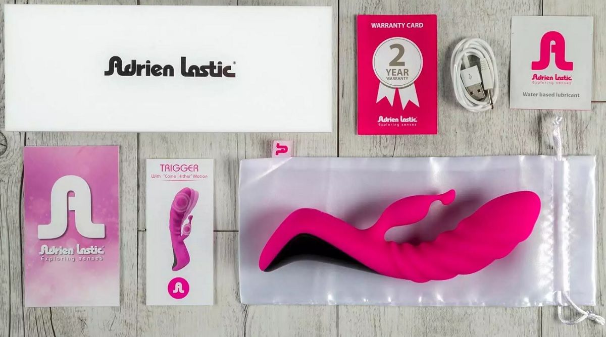 Вибратор кроличьего типа с колебательными движениями, широко известными под названием «иди сюда». Trigger – это колебательный массажер, считающийся одним из наиболее инновационных – не только в плане дизайна, но и в плане функциональности, разнообразия и мощности. Этот вибратор, с его несколькими вибрациями и независимыми колебаниями, заставит вас сойти с ума от удовольствия. Изготовленный с использованием силикона высочайшего качества по производственным стандартам Adrien Lastic, он также оснащен двумя мощными вибрационными двигателями для вагины и клитора. Его дизайн и шероховатость призваны усилить удовольствие в процессе введения и использования. Подзаряжаемый, беспроводный и очень простой в использовании. Позволяет вам наслаждаться семью режимами вибраций и двумя режимами колебаний невероятной интенсивности.
