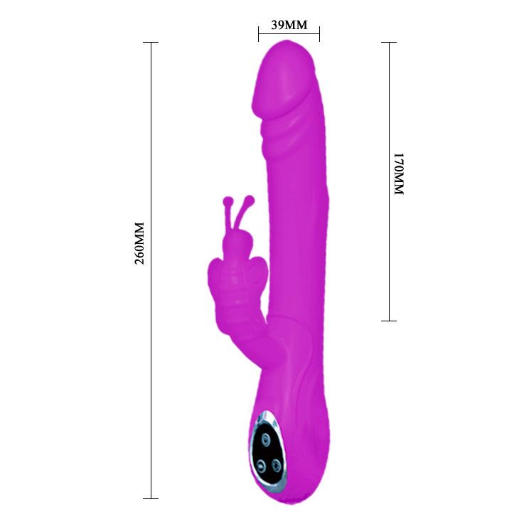 Многоскоростной перезаряжаемый вибратор сочного цвета. Имеет клиторальный стимулятор в виде бабочки с усиками. Рельефная поверхность с ярко выраженной головкой. Возможно раздельное управление вибрацией основного ствола и отростка. 12 режимов вибрации, 7 режимов ротации (головка может вращаться в обе стороны). Управление производится при помощи сенсорных кнопок у основания игрушки. Рабочая длина - 14,7 см.