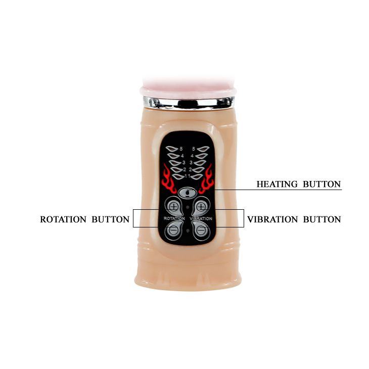 Хай-тек вибратор с клиторальным стимулятором, ярко выраженной головкой и рельефной поверхностью. Имеет 5 режимов вибрации и 5 режимов пульсации, которые удобно управляются кнопками на пульте основания игрушки. Также вибратор имеет функцию нагрева (до 48 градусов), которая легко включается-выключается одним нажатием кнопки. Заряжается вибратор при помощи зарядного устройства (входит в комплект) Длина клиторального отростка - 7 см., диаметр - 2,3 см. Рабочая длина - 18 см.