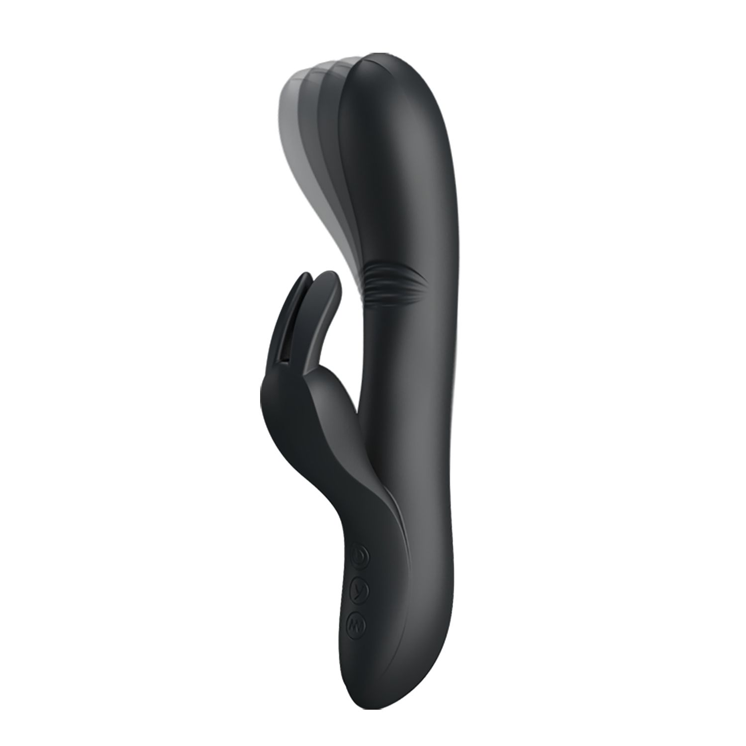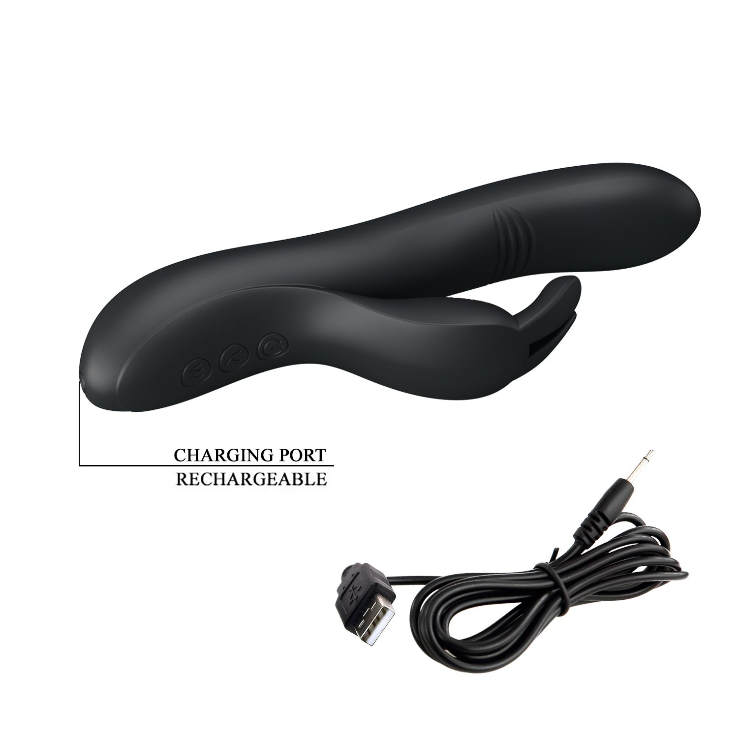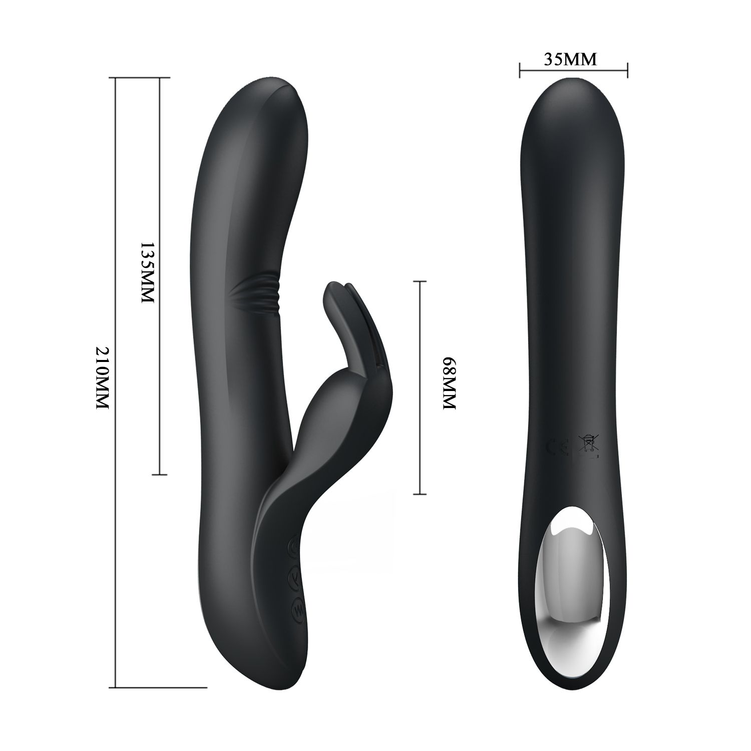 Силиконовый вибратор c клиторальным отростком в виде зайчика. Имеет 7 режимов вибрации и 4 режима, имитирующих стимуляцию пальчиком, лёгкое управление при помощи кнопок в основании. Имеет три моторчика. Прекрасная игрушка, созданная для удовлетворения самых изысканных желаний. Небольшой размер, интересная форма,клиторальный стимулятор с нежными ушками, мягкий бархатистый материал. Изюминка вибратора кроется в головке стимулятора, у которого есть функция переминание по ощущениям очень схожа с ласковыми движениями настойчивых пальчиков. Рабочая длина - 13,5 см.