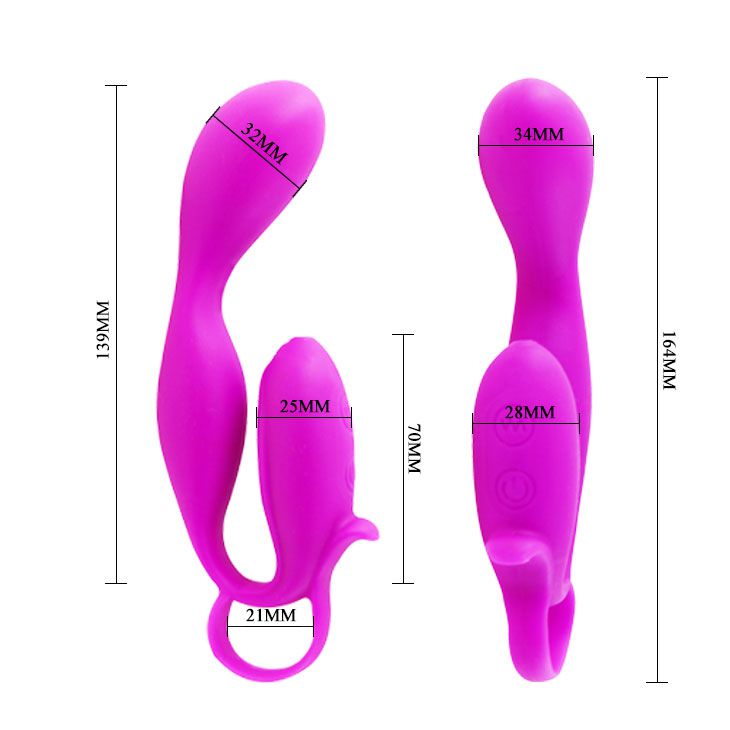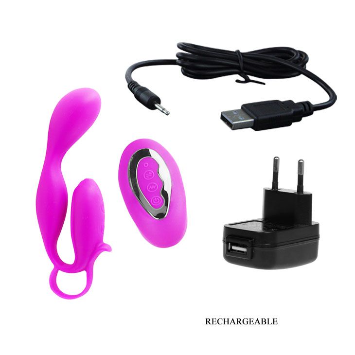 Вибромассажер эргономичной формы, средних размеров. Предназначен для одновременной стимуляции точки G и клитора. На теле масажера имеются три утолщения для точечного приложения вибраций. Имеет увеличенную в диаметре головку с волнообразными ребрышками для стимуляции точки G. Оснащен двумя независимыми моторами с восходящей вибрацией. В основании находится кольцо-держатель для комфортного извлечения. Влагостойкий, перезаряжаемый от аккумулятора. Имеет дистанционный пульт управления со встроенной воздушной подушкой, при нажатии на которую включается кратковременная вибрация. Можно переключить в режим постоянной вибрации. Управлять вибромассажером можно на расстоянии. В этой модели удалось в 3 раза увеличить расстояние, на котором работает вибромассажер и на 50% увеличить мощность вибраций. Женщина может выбирать между внутренним массажем или внешней стимуляцией, неизменным остается одно – влагонепроницаемость вибромассажера открывает безграничные возможности для игр. Компактный размер массажера позволяет брать его с собой в путешествия, а футуристическая форма не привлечет внимание и вам не придется отвечать на вопрос о том, что это такое вы там везете! Сделан из гладкого, шелковистого материала, очень приятного на ощупь. Упакован в двойную упаковку: внешняя красочная коробка с рисунками и обозначениями, внутри - плотный бокс черного цвета без опознавательных картинок. Рабочая длина - 13,9 см.