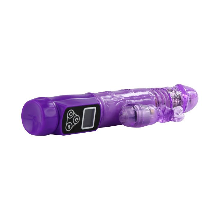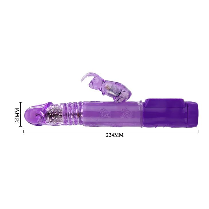 - Вибратор hi-tech фиолетового цвета с функцией вращения ствола и мощным клиторальным стимулятором в виде зайчика.