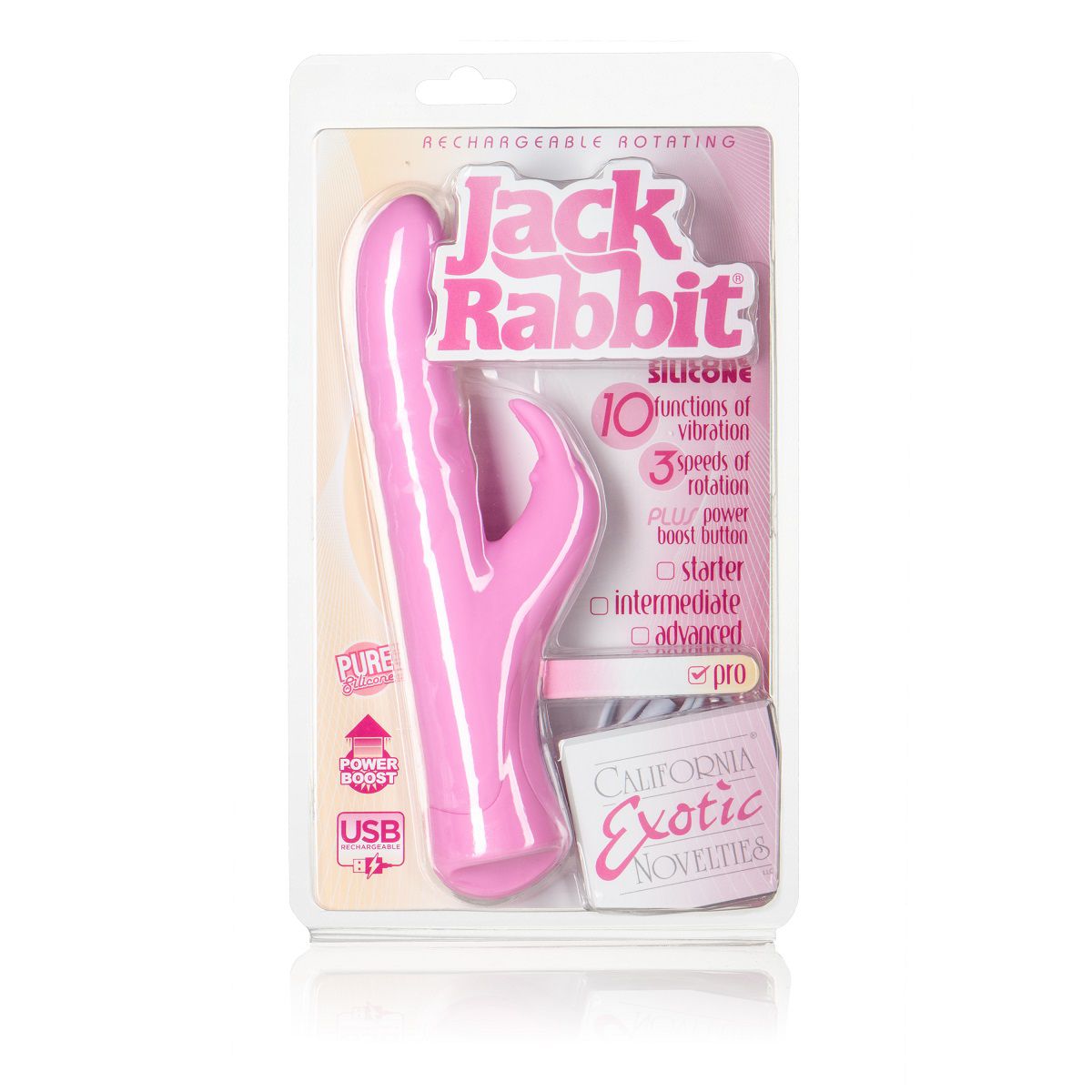 Перезаряжаемый вибромассажер с клиторальной стимуляцией ROTATING JACK RABBIT розового цвета. Водонепроницаемая игрушка имеет 3 скорости вибрации кролика для клитора. Доступно 10 необычайно мощных и невероятно захватывающих функций интенсивной вибрации, пульсации и эскалации. Подходит для опытных пользователей .Время работы на высокой скорости в течение 1 часа и на низкий в течение 1,5 часов. Питание: USB, для полного заряда требуется 2,5 часа. Рабочая длина - 12 см.
