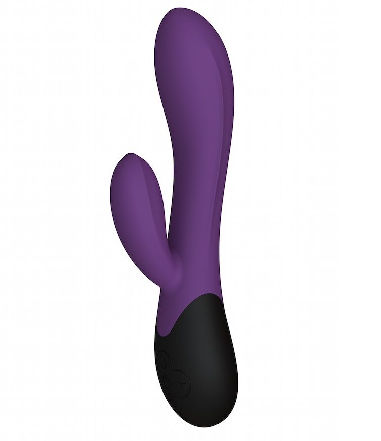 Фиолетовый вибратор с клиторальным отростком и нагревом