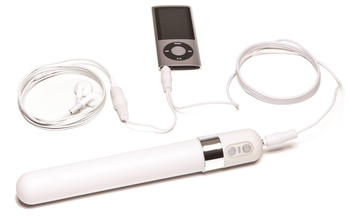 Музыкальный вибратор OhMiBod. Работает как в режиме обычных вибраций (7 запрограммированных режимов), так и в ритме прослушиваемой музыки. Подходит для использования со всеми проигрывателями, телефонами, планшетами, стереосистемами и т.д. - словом, со всеми гаджетами, которые воспроизводят музыку и имеют 3,5-мм разъем. Гладкая и удлиненная форма. Сделан из гипоаллергенного силикона, имеет удобный интерфейс. Рабочая длина - 14 см. В комплекте: вибратор Original 3.OH Music, шнур (90 см.), встроенная заглушка для использования без музыкального плеера, универсальный разъем для наушников, мешочек для хранения.