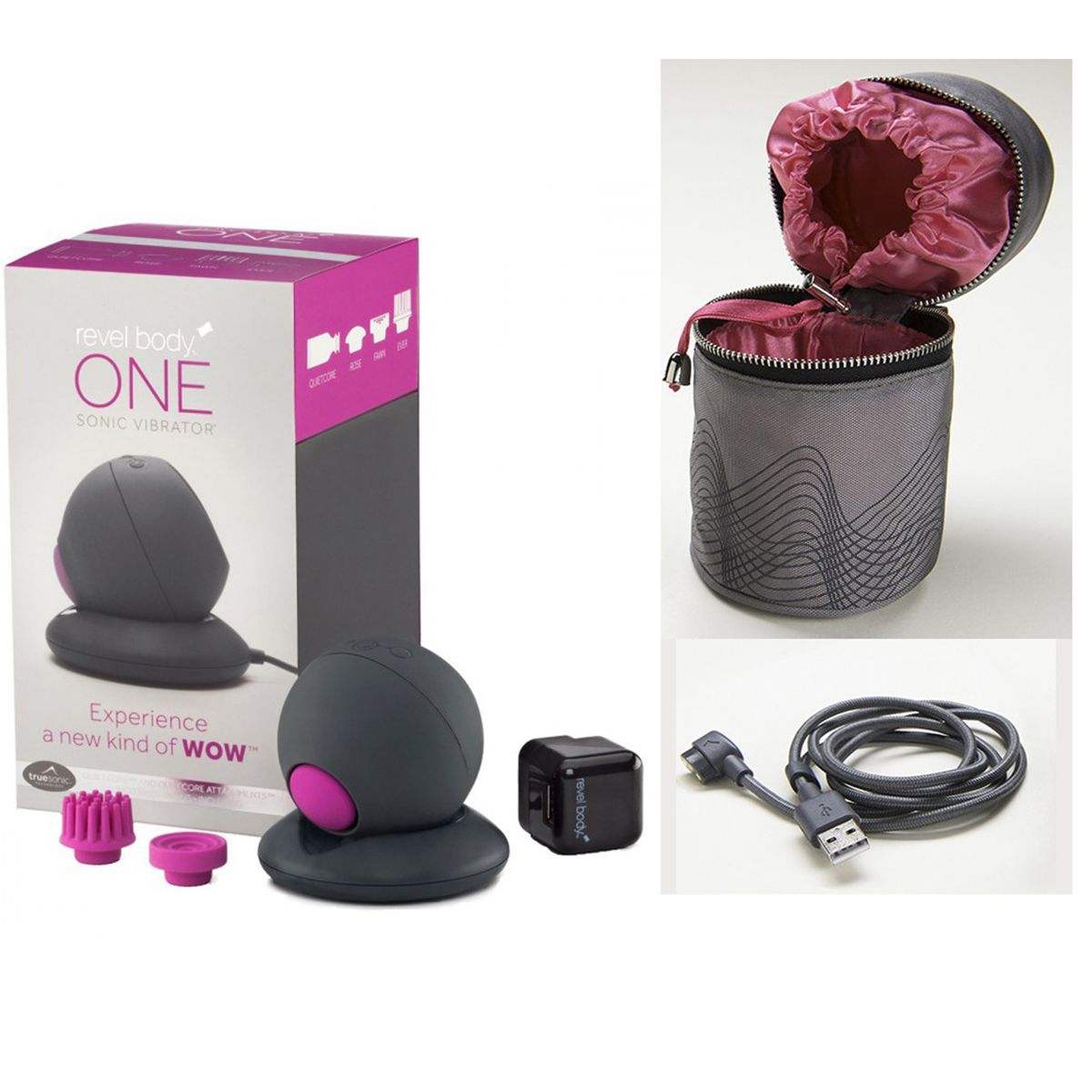 Smart Set №14: пульсатор Revel Body One и чехол с дополнительной зарядкой. Почувствуй себя обновленным, заряженным энергией и умиротворенным c Revel Body One - младшим братом Revel Body SOL, с первым в мире массажером, который работает с частотой энергии ОМ. Вибрация ОМ пробуждает сексуальную энергию, делает интимные ощущения ярче, снижает чувство стресса и волнения, обновляет душу, мысли и дух. Помимо этого вибратор создает вакуумный эффект под водой! Для этого всего лишь необходимо включить вибратор в воде, выбрать комфортную скорость вибрации и плотно прижать массажер к телу обратной стороной. Теперь бесконтактная стимуляция клитора в воде - это реальность! Массажер 100% водонепроницаем, выполнен из силикона и пластика без фталатов, никеля или свинца. Магнитный пульсатор работает от перезаряжаемого аккумулятора LiPo (заряжается от USB), имеет 6 скоростей вибрации. Сердечник левитирует в корпусе массажера в магнитном поле. Массажер имеет четко направленную вибрацию, не тратя ее попусту. Мощный двигатель будет стимулировать ту зону, на которую Вы направите его работу, ни капли бесполезной вибрации! Самая мощная вибрация находится на 3 скорости пульсатора. Вторая скорость соответствует базовой ступени энергии ОМ, четвертая - низкой ступени энергии ОМ, а 6 скорость - средней ступени энергии ОМ. В комплекте - зарядное устройство от USB, 3 сменные насадки - rose, fawn, ever, удобную упаковку Revel Body One можно использовать как кейс для хранения. В комплекте адаптер для зарядки от сети с американским разъемом, для подзарядки от сети необходим дополнительный переходник на евростандарт. Revel Body уникальный вибратор для всего тела! Удобная чехол-сумка на молнии поможет это сделать с комфортом. В чехле 2 отсека - первый, с вентиляционными отверстиями, для самого массажера и насадок, второй отсек, затягивающийся лентой, - для дополнительного шнура USB для зарядки массажера. Дополнительный кабель позволит не брать с собой станцию для зарядки пульсатора. Подходит для Revel Body SOL и Revel Body One.
