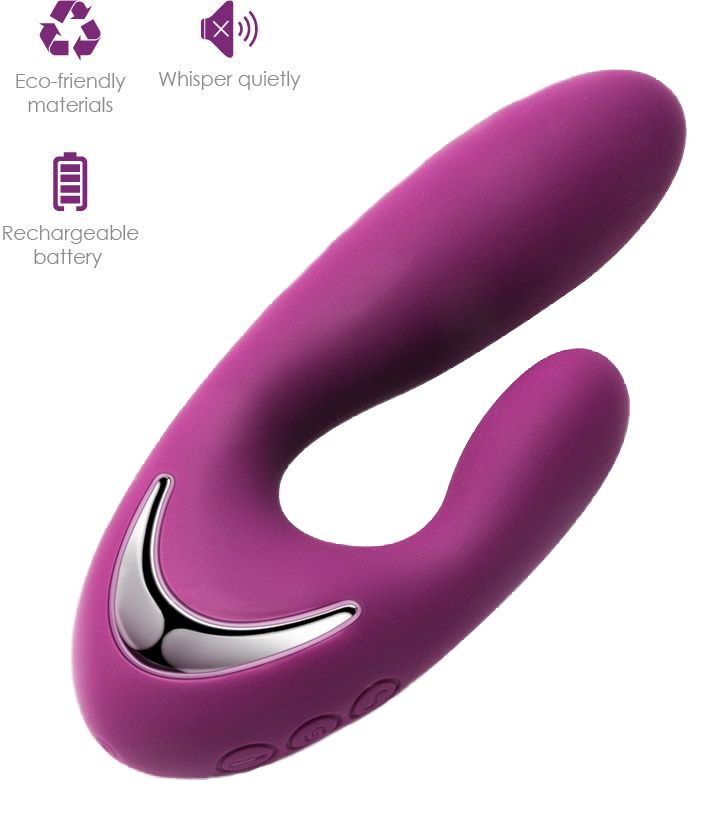 V-образный Vesper имеет две головки разных размеров на каждом конце, что поможет одновременно стимулировать G-точку и клитор. Vesper имеет 10 различных режимов вибрации и интеллектуальный режим SVAKOM, чтобы направлять вас в прекрасное секс-путешествие от начала и до конца. Функция нагрева основного ствола до 38 градусов. Может использоваться на глубине до 1 метра. Время зарядки - 1 час. Время работы - 2 часа.