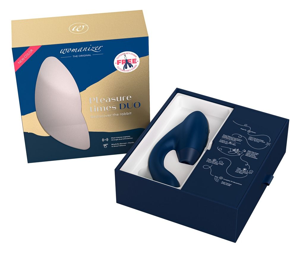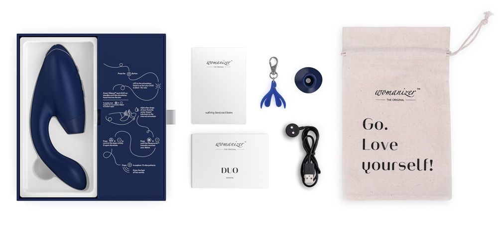 Неважно, являетесь ли вы взыскательной ценительницей удовольствий или просто ищете новых ощущений — Womanizer Duo поднимет Вас к вершинам оргазмических ощущений снова и снова благодаря принципу одновременной стимуляции. DUO имеет клиторальный стимулятор, выполненный в форме традиционного Womanizer – он мягко ласкает клитор с помощью технологии Pleasure Air. Кроме того, у DUO есть мощный вибратор, который адаптируется к форме Вашего тела, чтобы идеально стимулировать Ваши самые важные точки. 10 режимов вибрации и 12 скоростей. Рабочая длина отростка - 11 см., диаметр - 3,5 см.