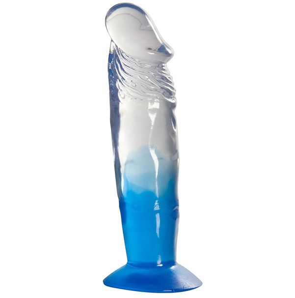 Голубой фаллоимитатор с прозрачным стволом без мошонки JELLY JOY FADE OUT DONG 7INCH BLUE. С подошвой-присоской.