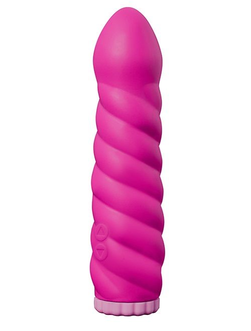 Ярко-розовый вибратор со спиралевидным рельефом PURRFECT SILICONE DELUXE 100 FUNCTION. 10 режимов вибрации и 10 скоростей на каждом.
