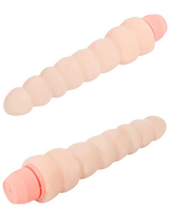 Вибратор ребристой формы, гнущийся. Изготовлен из суперсовременного материала «ультраскин», который с предельной точностью имитирует человеческую кожу, принимает температуру человеческого тела. Обладает неповторимой гибкостью и приятной структурой поверхности. Принимает любые формы, которые подарят дополнительное наслаждение от секса. Ребристая поверхность придаст особую пикантность ощущениям.