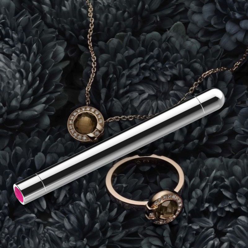 Металлический вибратор CiCi с силиконовой насадкой имеет 10 режимов вибрации и абсолютно водонепроницаем.