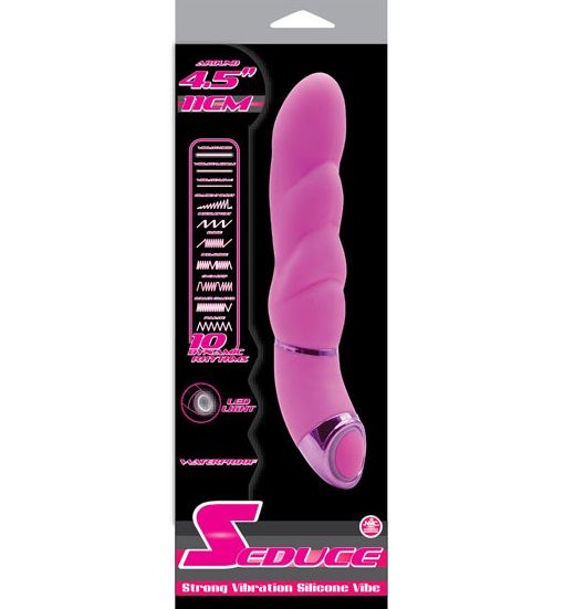 Мощный розовый вибратор Seduce с наплывами на стволе. Имеет 10 режимов. Рабочая длина - 11 см.