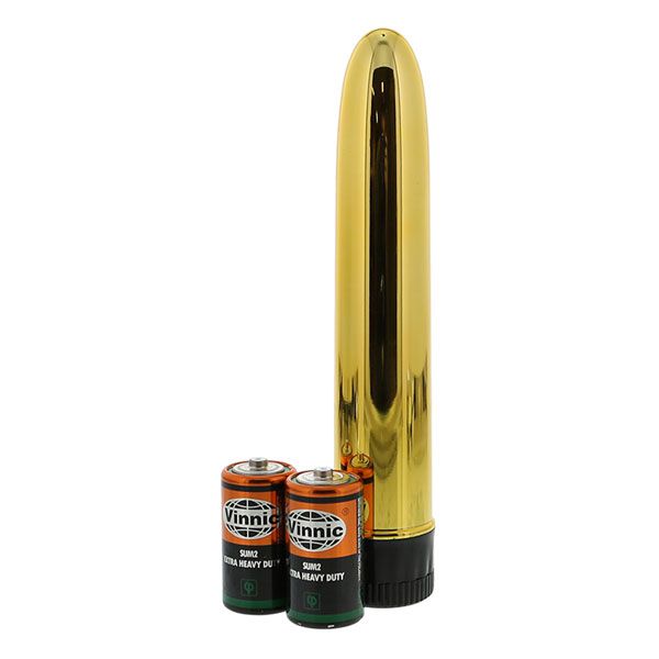 Золотистый классический вибратор с идеально гладкой поверхностью SLIM-LINE VIBRATOR GOLD. Батарейки в комплекте.