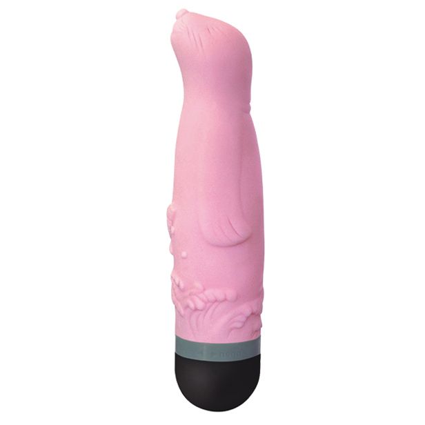 Розовый вибромассажёр в виде морского котика. 4 режима вибрации. Оригинальная форма. Бархатистая на ощупь поверхность.