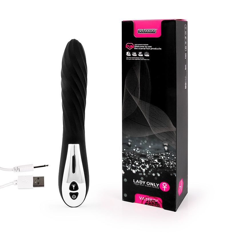 Чёрный стильный вибромассажёр с 12 режимами вибрации