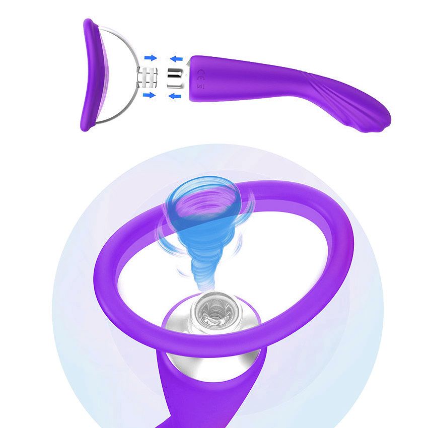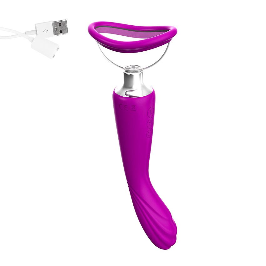 Оригинальный интимный аксессуар для воздействия на клитор, влагалище, соски и т.д. С одной его стороны расположен вибратор, с другой – прозрачная чаша для создания вакуума. В арсенале секс-игрушки имеются разнообразные режимы вибрации и вакуума, работа которых регулируется кнопками на корпусе. Вибратор используется для наружной и внутренней стимуляции эрогенных зон, при этом создавая вибрацию. Для получения вакуума необходимо поместить чашу на выбранную зону так, чтобы она плотно прилегала к телу. Для включения/выключения/переключения вакуумного режима необходимо использовать соответствующие кнопки. Размеры чаши - 8,5 x 5,9 см.