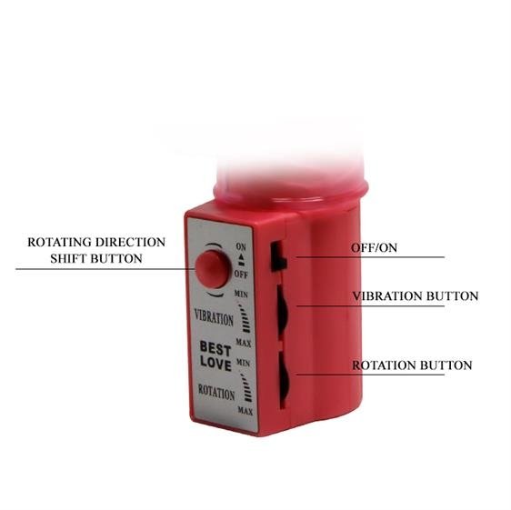 Вибратор с ротацией и с клиторальным стимулятором. Управление осуществляется колесиками сбоку от основания.
