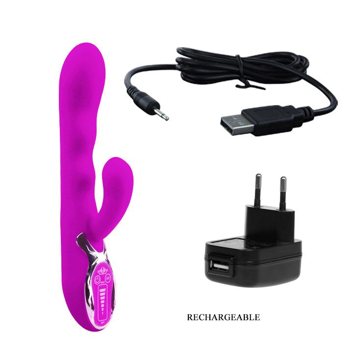 Многоскоростной перезаряжаемый вибратор пурпурного цвета. Имеет клиторальный стимулятор. Рельефная поверхность с головкой. Имеет 10 режимов вибрации, управление производится при помощи сенсорных кнопок у основания игрушки. Интенсивность вибрации регулируется сенсорным блоком, проводя по которому можно легко увеличить или снизить скорость вибрации. Рабочая длина - 13,5 см. Длина клиторального отростка - 6 см., диаметр - 2,1 см. В комплекте: вибратор, зарядное устройство, инструкция на русском языке, мешочек для хранения.