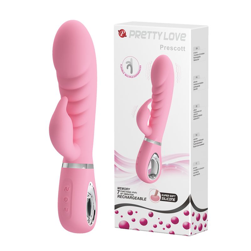 Нежно-розовый вибратор с клиторальным отростком Baile Prescott BI-014635-1 (20 см)