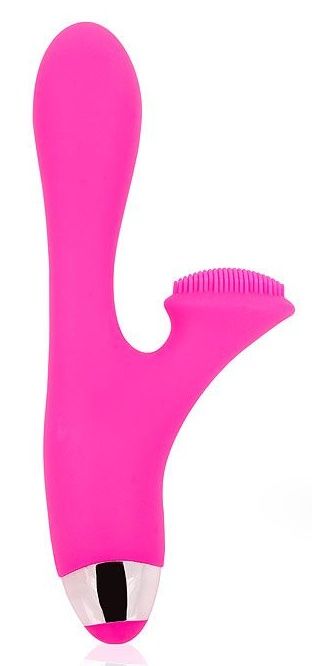 Розовый вибромассажёр с клиторальным стимулятором с шипиками